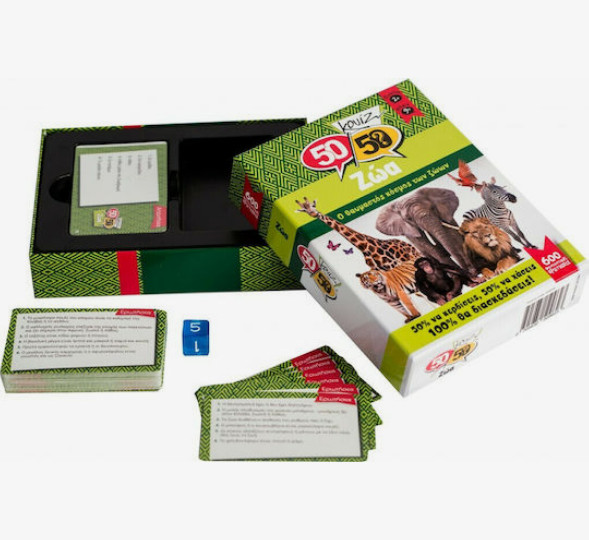 Το 50/50 Games – Επιτραπέζιο Παιχνίδι Ζώα είναι ένα γρήγορο και άκρως διασκεδαστικό παιχνίδι γνώσεων, αφιερωμένο στο ζωικό βασίλειο. Σχεδιασμένο για μικρούς και μεγάλους, συνδυάζει τον ανταγωνισμό με τη μάθηση, προσφέροντας μια εμπειρία γεμάτη γέλιο, αγωνία και νέες γνώσεις.