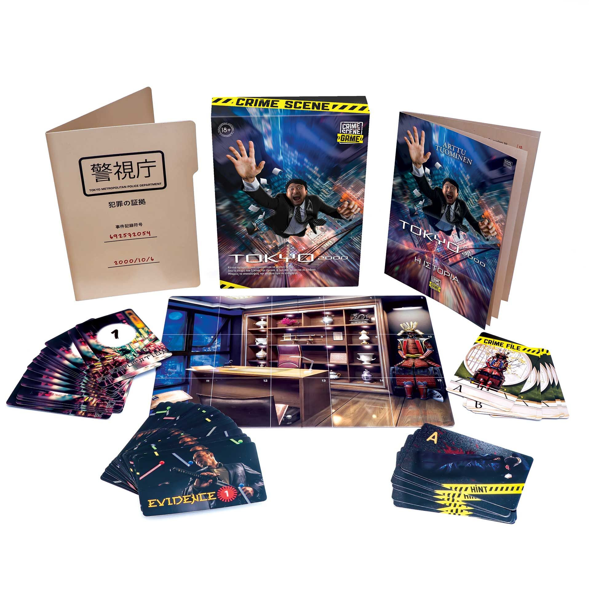 Το Crime Scene: Tokyo 2000 είναι ένα καθηλωτικό επιτραπέζιο μυστηρίου για ενήλικες, όπου η γραμμή ανάμεσα στην αλήθεια και στο ψέμα γίνεται όλο και πιο θολή. Στις 10 Ιουνίου 2000, ένας επιτυχημένος επιχειρηματίας βρίσκεται νεκρός κάτω από έναν ουρανοξύστη στο Τόκιο. Όλα δείχνουν αυτοκτονία—ή μήπως όχι;