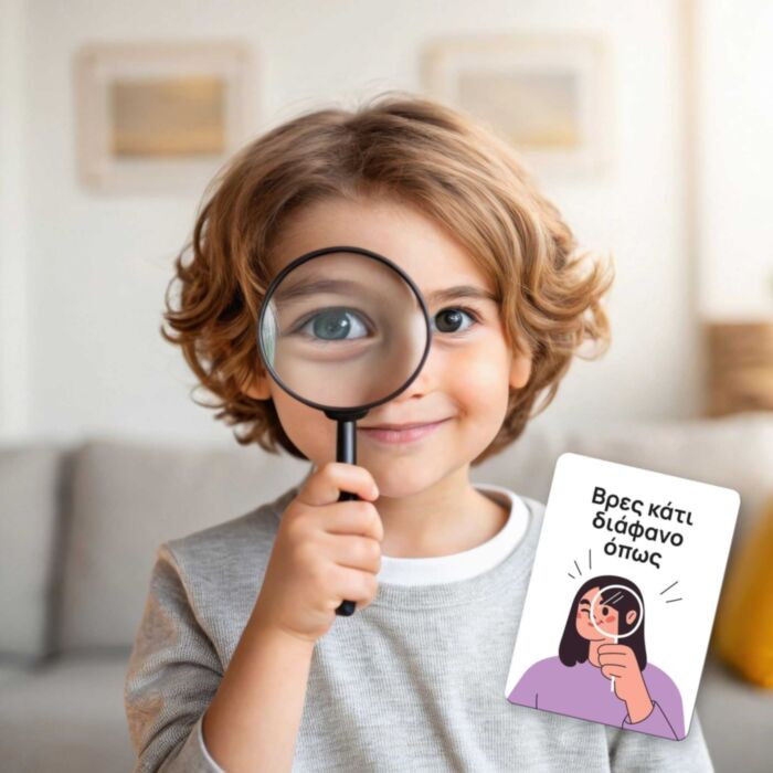 Οι κάρτες του παιχνιδιού περιλαμβάνουν διαφορετικές κατηγορίες προκλήσεων, ενισχύοντας βασικές δεξιότητες μέσω του παιχνιδιού: παρατηρητικότητα, μνήμη, σωματική κίνηση και αντίληψη χώρου. Η εναλλαγή ανάμεσα σε αινίγματα, κινήσεις και νοητικές δοκιμασίες κρατάει το ενδιαφέρον των παιδιών αμείωτο, ενώ τους δίνει τη δυνατότητα να μάθουν μέσα από την ενεργή συμμετοχή.