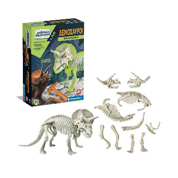 Το Μαθαίνω & Δημιουργώ: Δεινόσαυροι – Τρικεράτωψ μεταφέρει τα παιδιά σε μια συναρπαστική παλαιοντολογική αποστολή. Με το σφυρί και το καλέμι που περιλαμβάνονται, μπορούν να σκάψουν το πέτρωμα, να ξεθάψουν τα απολιθώματα και να ανακαλύψουν βήμα–βήμα τον σκελετό του Τρικεράτωπα, ενός από τους πιο γνωστούς φυτοφάγους δεινόσαυρους της Κρητιδικής περιόδου.