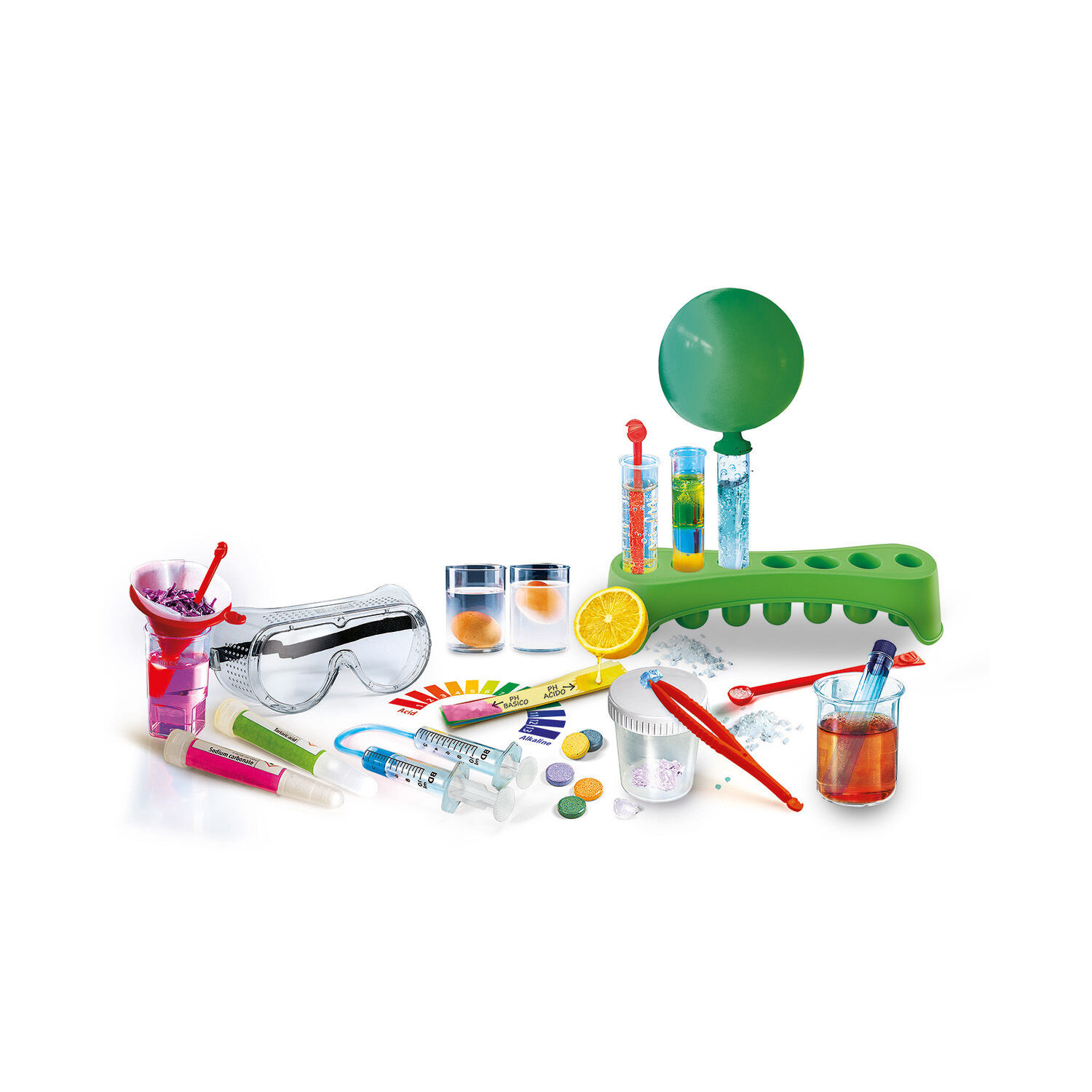 Με πληθώρα εργαλείων όπως δοκιμαστικούς σωλήνες, σταγονόμετρα, χωνιά, σύριγγες και χημικές ουσίες ειδικά σχεδιασμένες για παιδιά, οι μικροί επιστήμονες μπορούν να πειραματιστούν, να παρατηρήσουν αλλαγές, να μετρούν ποσότητες και να ανακαλύπτουν τα μυστικά της ύλης. Το αναλυτικό, εικονογραφημένο εγχειρίδιο εξηγεί βήμα–βήμα κάθε πείραμα, προσφέροντας διαφορετικά επίπεδα δυσκολίας για σταδιακή εξέλιξη.