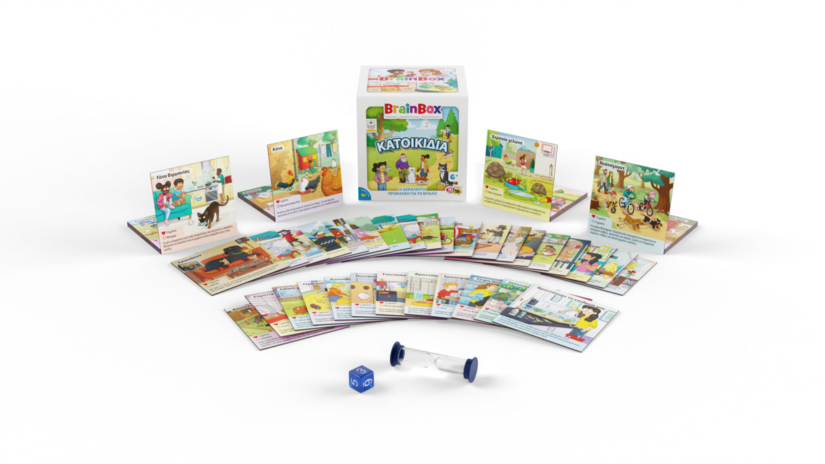 Το BrainBox: Κατοικίδια είναι ένα εκπαιδευτικό επιτραπέζιο παιχνίδι που συστήνει στα παιδιά τον υπέροχο κόσμο των ζώων συντροφιάς. Από γνωστές ράτσες σκύλων και γατών μέχρι ψάρια, ερπετά και άλλα φιλικά κατοικίδια, το παιχνίδι συνδυάζει γνώση και διασκέδαση με τον χαρακτηριστικό τρόπο της σειράς BrainBox.