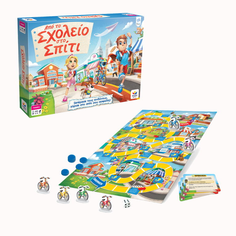 Το επιτραπέζιο ''Από το Σχολείο στο Σπίτι'' είναι ένα εκπαιδευτικό και διασκεδαστικό επιτραπέζιο παιχνίδι που βοηθά τα παιδιά να μάθουν βασικούς κανόνες ασφάλειας στην καθημερινότητά τους. Οι παίκτες καθοδηγούν τέσσερις φίλους μέσα από διαφορετικές διαδρομές — στο σχολείο, στο σπίτι και στους ενδιάμεσους χώρους — παίρνοντας σωστές αποφάσεις για να αποφύγουν κινδύνους και να φτάσουν ασφαλείς στον προορισμό τους.