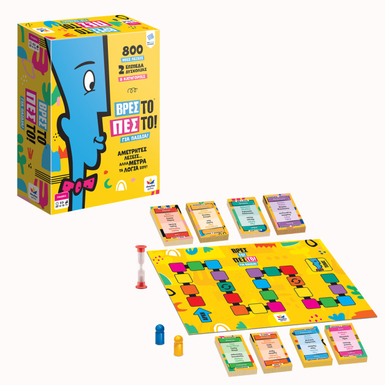 Το επιτραπέζιο ''Βρες το Πες το! Για Παιδιά'' είναι η παιδική εκδοχή του αγαπημένου παιχνιδιού λέξεων, ειδικά σχεδιασμένη για να προσφέρει διασκέδαση και εκπαίδευση ταυτόχρονα. Με 8 κατηγορίες λέξεων και 2 επίπεδα δυσκολίας, το παιχνίδι προσαρμόζεται στην ηλικία και στις γλωσσικές ικανότητες των παιδιών, ενισχύοντας το λεξιλόγιο, τη γρήγορη σκέψη και την προφορική έκφραση.