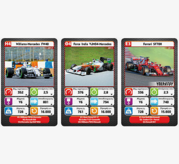 Το Δεσύλλας Υπερατού Φόρμουλα 1 μεταφέρει την ταχύτητα, την ένταση και τον ανταγωνισμό της Formula 1 σε ένα συναρπαστικό παιχνίδι καρτών για όλη την οικογένεια. Με 32 κάρτες γεμάτες στατιστικά από διάσημες ομάδες όπως Ferrari, Mercedes και McLaren, οι παίκτες συγκρίνονται γύρο με γύρο για να αναδειχθεί ο νικητής.