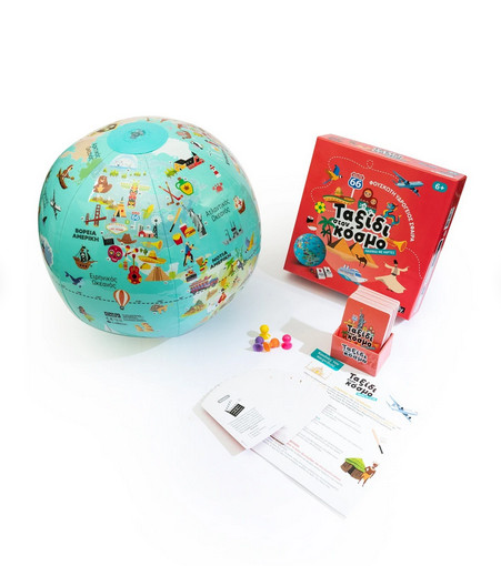 Η «Φουσκωτή Υδρόγειος Σφαίρα: Ταξίδι στον Κόσμο» είναι ένα πρωτότυπο εκπαιδευτικό παιχνίδι γνώσεων και παρατηρητικότητας που προσκαλεί τα παιδιά να εξερευνήσουν ολόκληρο τον πλανήτη. Παίζοντας πάνω σε μια φουσκωτή υδρόγειο, οι παίκτες ανακαλύπτουν χώρες, πολιτισμούς, αξιοθέατα και εντυπωσιακά επιτεύγματα από όλο τον κόσμο.
