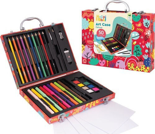Το HappiHobbi Deluxe Σετ Ζωγραφικής σε Ξύλινο Βαλιτσάκι είναι το απόλυτο δημιουργικό δώρο για παιδιά που αγαπούν να εκφράζονται μέσα από τα χρώματα.
