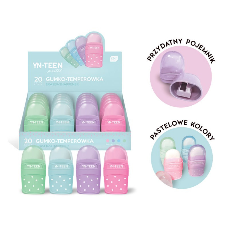 Η Interdrunk Ξύστρα Μονή με Γόμα Pastel συνδυάζει δύο χρήσιμες λειτουργίες σε ένα εργαλείο: μια μονή ξύστρα και μια πρακτική γόμα. Είναι κατασκευασμένη σε μοντέρνα παστέλ χρώματα και προσφέρει άνετη χρήση για το σχολείο, το γραφείο ή το σπίτι. Αποστέλλεται σε τυχαίο χρώμα.