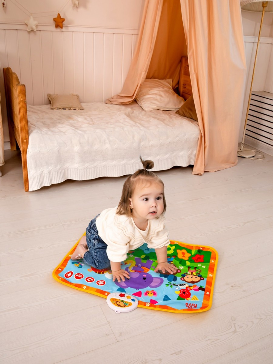 Το μαλακό υλικό, τα φωτάκια που αναβοσβήνουν στον ρυθμό της μουσικής και οι χαρούμενες μελωδίες δημιουργούν μια ευχάριστη ατμόσφαιρα, κρατώντας το ενδιαφέρον του παιδιού αμείωτο και μετατρέποντας κάθε στιγμή σε παιχνίδι χαράς και μάθησης.