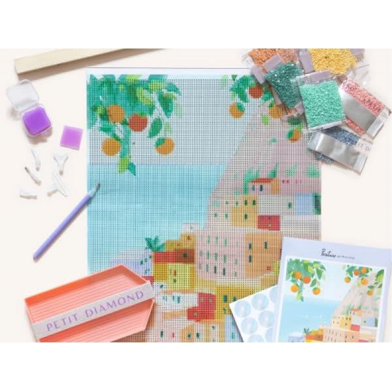 Το Petit Diamond Positano της La Petite Epicerie είναι ένα ολοκληρωμένο σετ diamond painting που σε ταξιδεύει στο μαγευτικό παραθαλάσσιο σκηνικό της Ακτής Αμάλφι. Με κάθε μικρό διαμάντι που τοποθετείς, η εικόνα γεμίζει χρώμα και λάμψη, προσφέροντας στιγμές χαλάρωσης και δημιουργικότητας.