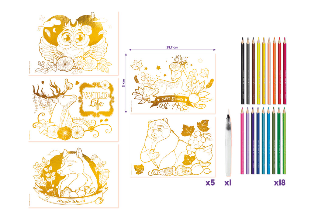 - Περιλαμβάνει 5 μεταλλιζέ εικονογραφημένα σχέδια Α4