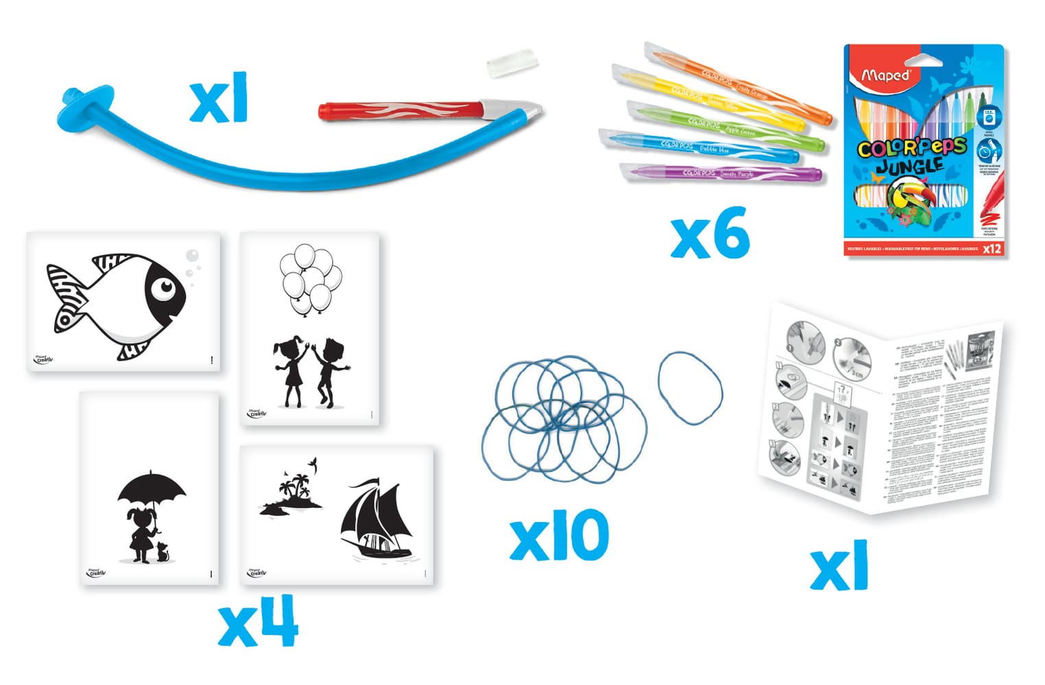 Το Maped Creative Blowpen Art με Λάστιχα είναι ένα μοναδικό δημιουργικό σετ που επιτρέπει στα παιδιά να ανακαλύψουν μια νέα μέθοδο χρωματισμού. Με χαρούμενα χρώματα, απλή χρήση και εντυπωσιακά αποτελέσματα, αποτελεί την ιδανική επιλογή για κάθε μικρό καλλιτέχνη που αγαπά τις πρωτότυπες τεχνικές ζωγραφικής.