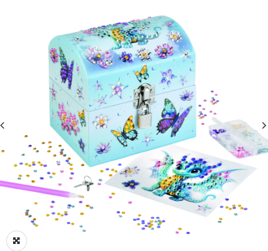 Η Maped Creativ Diamond Painting Κοσμηματοθήκη είναι ένα μοναδικό δημιουργικό παιχνίδι DIY που επιτρέπει στα παιδιά να σχεδιάσουν και να διακοσμήσουν τη δική τους κοσμηματοθήκη. Με μια όμορφη κατασκευή που διαθέτει κλειδαριά για ασφαλή αποθήκευση, τα παιδιά μπορούν να εκφράσουν τη φαντασία τους χρησιμοποιώντας 520 πολύχρωμα διαμαντάκια και να δημιουργήσουν ένα εντυπωσιακό αποτέλεσμα γεμάτο λάμψη. Το σετ συνδυάζει διασκέδαση και δημιουργικότητα, βοηθώντας στην ανάπτυξη της λεπτής κινητικότητας και της συγκέντρωσης. Ιδανικό για παιδιά που αγαπούν τις κατασκευές, το diamond painting και τις χειροτεχνίες, προσφέρει ώρες ευχάριστης απασχόλησης και ένα όμορφο αντικείμενο για προσωπική χρήση.