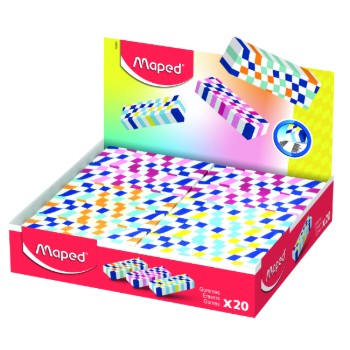 Η Maped Γόμα Illusion ξεχωρίζει για το μοναδικό της στυλ, συνδυάζοντας γεωμετρικά checkerboard σχέδια με υψηλή απόδοση σβησίματος. Πρόκειται για μια μοντέρνα σχολική γόμα, ιδανική για μαθητές που θέλουν να προσθέσουν στυλ στα σχολικά τους είδη. Προσφέρει καθαρό σβήσιμο χωρίς μουτζούρες, ενώ το εργονομικό της σχήμα διευκολύνει τη χρήση σε κάθε εργασία. Διατίθεται σε 3 διαφορετικά σχέδια, προσφέροντας επιλογές που καλύπτουν κάθε γούστο. Ιδανική για σχολείο, γραφείο ή δημιουργικές δραστηριότητες.