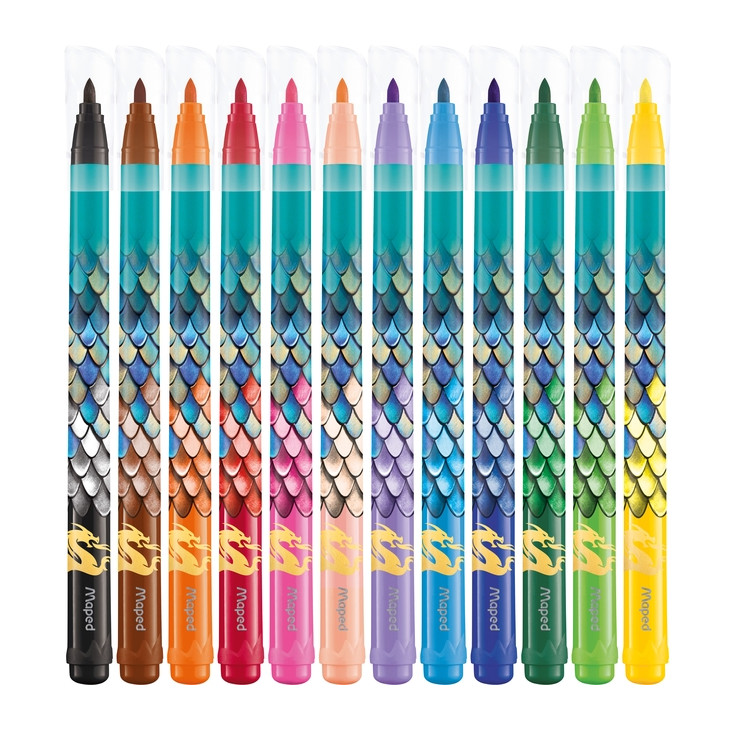 Οι Maped Μαρκαδόροι Dragon (12 Χρώματα) είναι σχεδιασμένοι για να προσφέρουν έντονα χρώματα, άνεση στη χρήση και ασφάλεια για τα παιδιά. Με εντυπωσιακό σχέδιο δράκου και εργονομικό σώμα, αποτελούν ιδανική επιλογή για ζωγραφική, χειροτεχνίες και σχολικές δραστηριότητες.