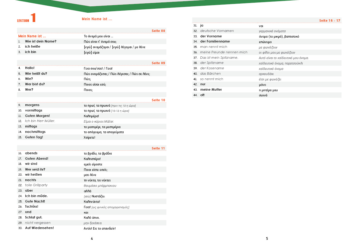 Το τετράδιο λειτουργεί ως προσωπικό λεξικό και περιλαμβάνει: