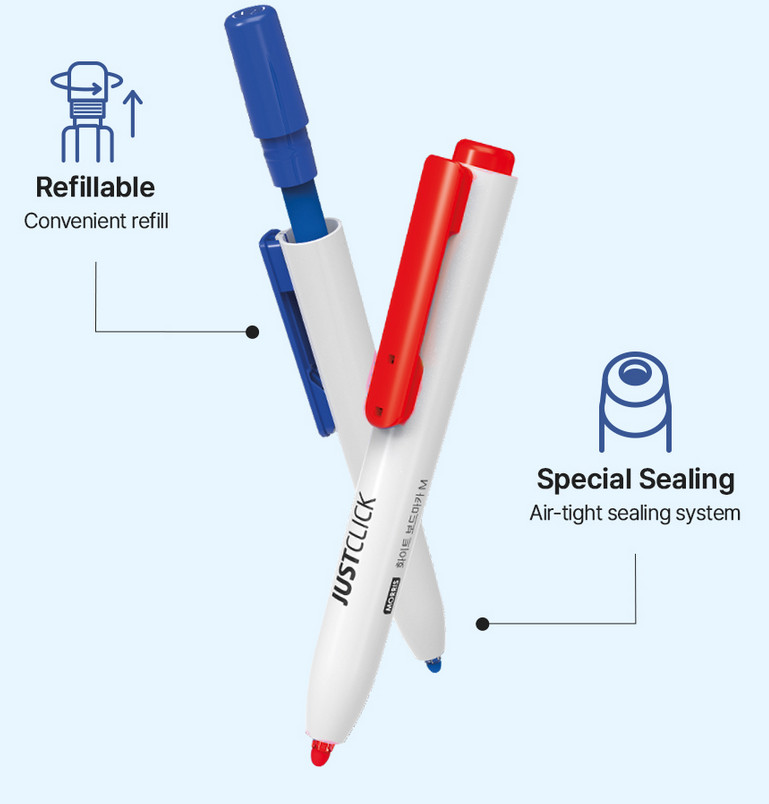 Χάρη στο air-tight sealing system, το μελάνι παραμένει φρέσκο και σταθερό, ενώ η μύτη μεσαίου πάχους 2mm προσφέρει καθαρή και ομοιόμορφη γραφή με εξαιρετικό σβήσιμο.