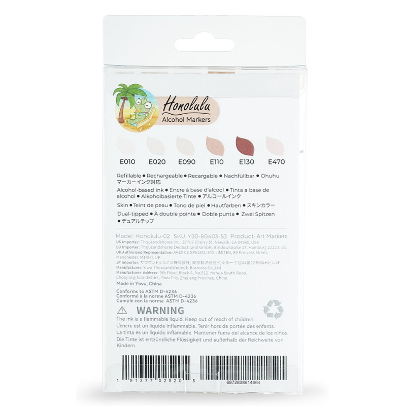 Το σετ μαρκαδόρων αλκοόλης Ohuhu Honolulu Skin Tones (6 χρώματα) αποτελεί ιδανική επιλογή για καλλιτέχνες, εικονογράφους και δημιουργούς που θέλουν αξιόπιστα βασικά χρώματα για κάθε project. Οι αποχρώσεις του σετ καλύπτουν ένα ευρύ φάσμα εφαρμογών, από σκίτσο και illustration έως manga και design.