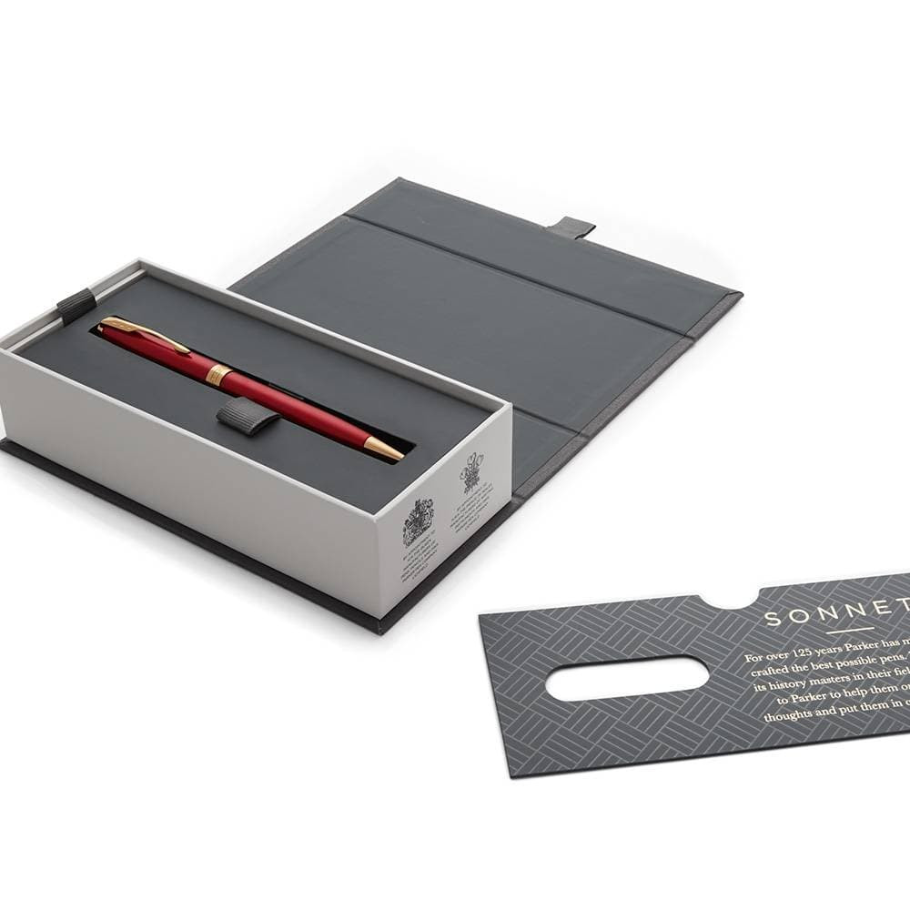 Το στυλό Parker Sonnet Laque Red GT δεν είναι απλώς ένα στυλό διαρκείας αλλά ένα αντικείμενο υψηλής αισθητικής και τεχνικής αρτιότητας. Με κόκκινη λάκα πάνω σε ορείχαλκο, επίχρυσες λεπτομέρειες και χειροποίητη κατασκευή, προσφέρει εμπειρία γραφής που συνδυάζει πολυτέλεια, αξιοπιστία και διαχρονική κομψότητα.