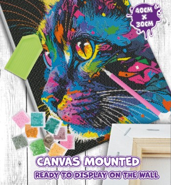 Το Splat Planet Diamond Painting με πολύχρωμη γάτα είναι μια μοναδική εμπειρία δημιουργίας και χαλάρωσης, που σας επιτρέπει να δημιουργήσετε ένα λαμπερό έργο τέχνης και να αναβαθμίσετε τον χώρο σας με στυλ.