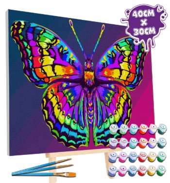 Ο Splat Planet Πίνακας Ζωγραφικής Με Αριθμούς Πεταλούδα είναι ένα δημιουργικό σετ που προσφέρει χαλάρωση, διασκέδαση και καλλιτεχνική έκφραση για όλες τις ηλικίες. Ο προτυπωμένος καμβάς με αριθμούς από 100% υφαντό λινό διευκολύνει τη διαδικασία ζωγραφικής, ενώ τα 24 ακρυλικά χρώματα υψηλής ποιότητας είναι έτοιμα προς χρήση χωρίς ανάμειξη και είναι μη τοξικά και ασφαλή για παιδιά. Το σετ περιλαμβάνει επίσης 3 πινέλα διαφορετικών μεγεθών, καλύπτοντας κάθε ανάγκη λεπτομέρειας. Ο καμβάς είναι ήδη τεντωμένος σε πλαίσιο, έτοιμος για ζωγραφική και άμεση ανάρτηση στον τοίχο μετά την ολοκλήρωση, μετατρέποντας το έργο σας σε ένα εντυπωσιακό διακοσμητικό στοιχείο.