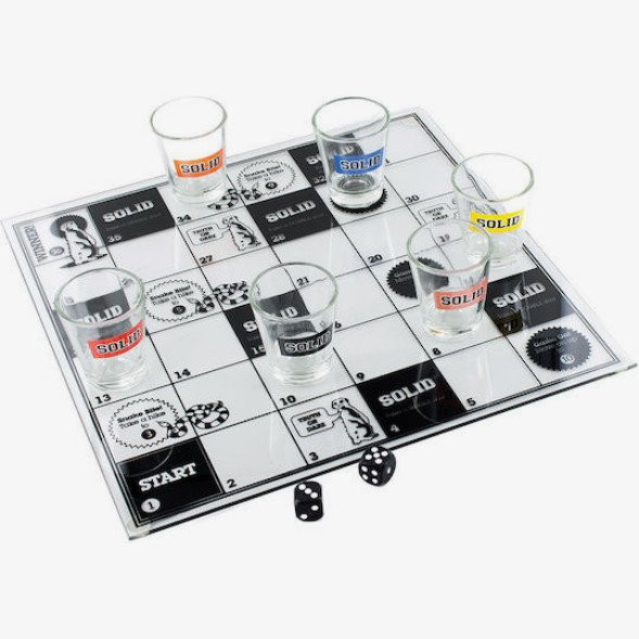 Το επιτραπέζιο αποτελείται από γυάλινο board τεσσάρων κομματιών, προσφέροντας σταθερότητα και ανθεκτικότητα. Τα έξι σφηνοπότηρα με το λογότυπο “SOLID” και τα διάφανα ζάρια ολοκληρώνουν ένα σετ που ξεχωρίζει τόσο σε εμφάνιση όσο και σε λειτουργικότητα.