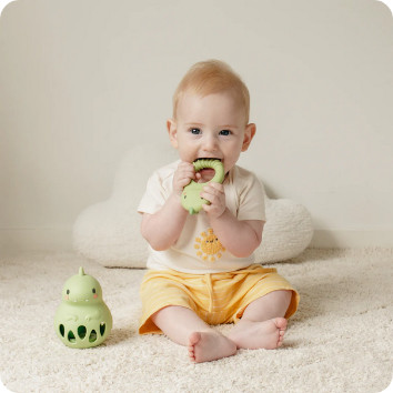 Το Tiger Tribe Silicone Teether –Dino είναι το ιδανικό μασητικό για τα πρώτα στάδια της οδοντοφυΐας. Κατασκευασμένο από μαλακή, food-grade σιλικόνη, προσφέρει άμεση ανακούφιση στα ευαίσθητα ούλα του μωρού, ενώ η απαλή υφή του και το χαριτωμένο σχέδιο δεινοσαύρου το κάνουν ακαταμάχητο για μικρά χεράκια.