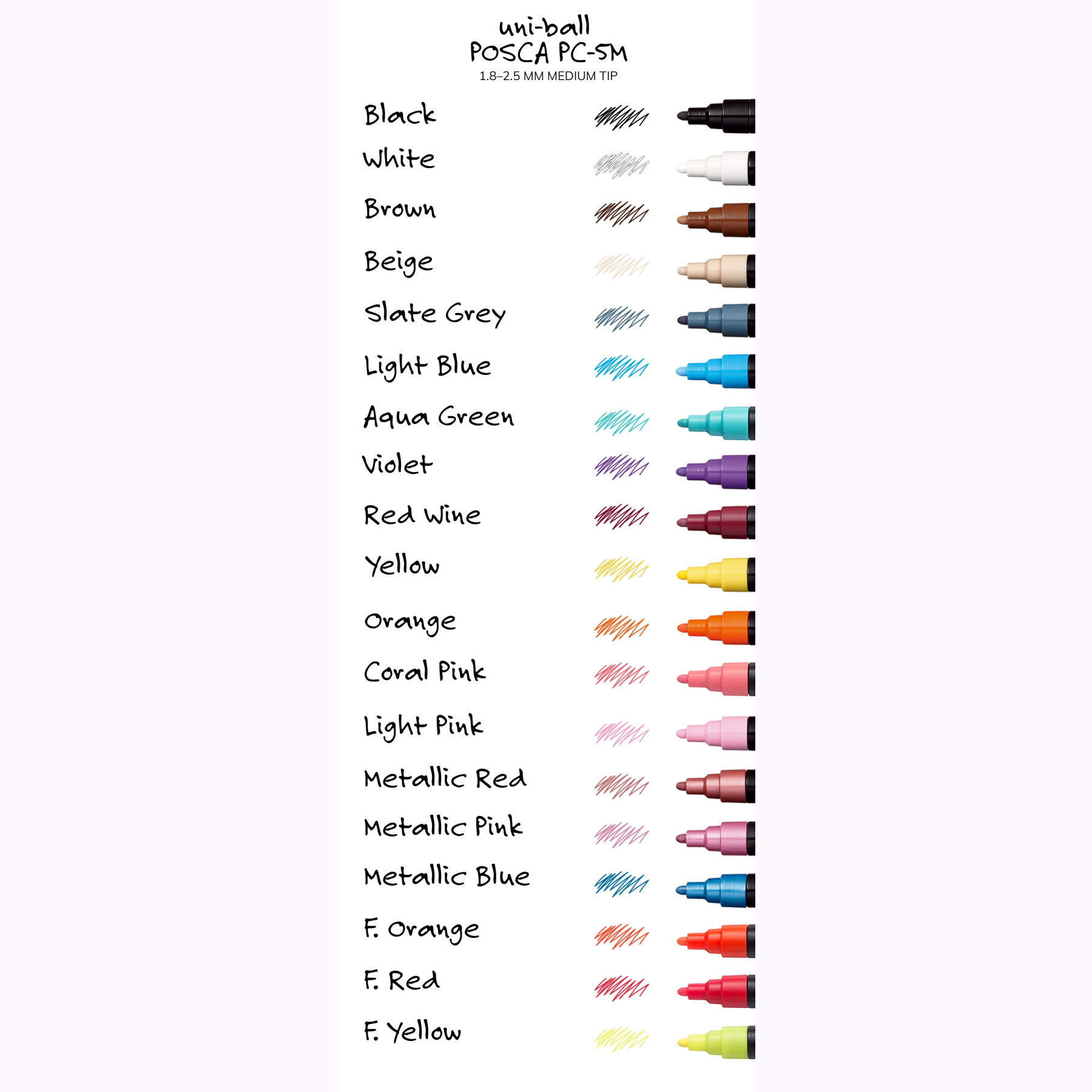 Η ευέλικτη μύτη του Uni Posca PC-5M προσφέρει απεριόριστη ελευθερία χρήσης και προσαρμόζεται σε όλους τους τύπους δημιουργίας. Διαθέσιμο σε 39 χρώματα που μπορούν να αναμειχθούν και να στρωθούν, το υδατοδιαλυτό, μη τοξικό μελάνι στεγνώνει γρήγορα και μπορεί να χρησιμοποιηθεί σε διάφορες επιφάνειες.